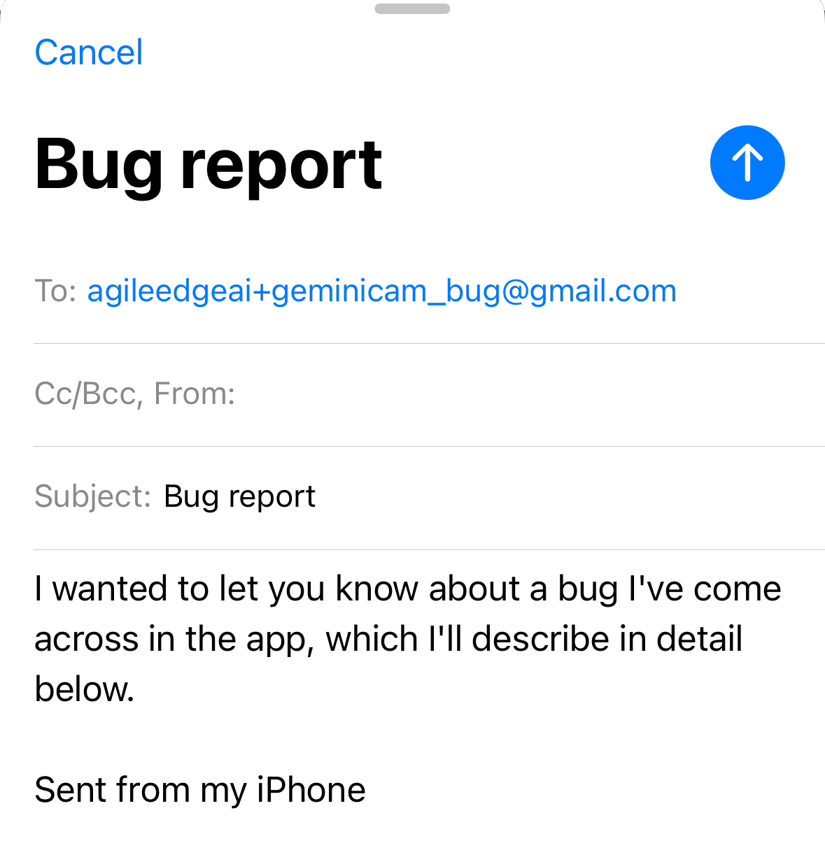 - The email app will open with your chosen subject line and a short description. Please provide the details of your questions.
